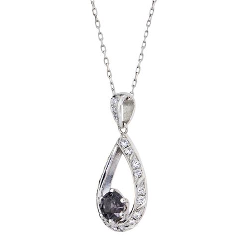 Droppformat hängsmycke med svart spinell och briljantslipade diamanter.